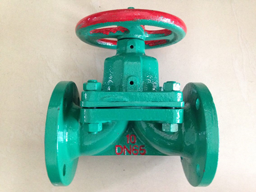 6.阀门的启闭是依靠旋转手轮而达到的。本阀在阀盖上端标有可窥见阀门处启或闭位置的显示色别,以指示阀门的启闭行程。当顺时针放置手轮时,手轮即下移,阀瓣随之带动隔膜下降使通路截断;反之则阀门即开启,色别随之显露。